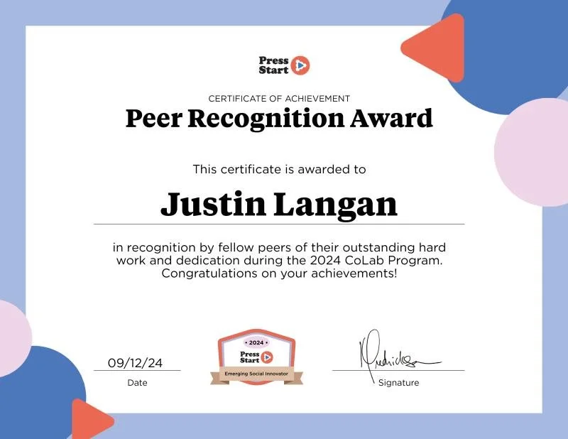 2024 Press Start CoLab Program Participant - to support social entrepreneurs in collaboratively developing radical solutions to today's most pressing problems with a focus on the Mental Health Crisis in Canada.
